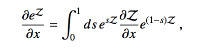 Taking derivatives of exponentials of functions is easy standard calculus. But life gets harder if you want to take derivatives of exponentials of operators. This Wilcox identity neatly solved that problem. Putting this math together with the superoperator description of the dynamics, and we get a general expression for evaluating gradients of quantum gates, which we have called the Stochastic Parameter Shift Rule.